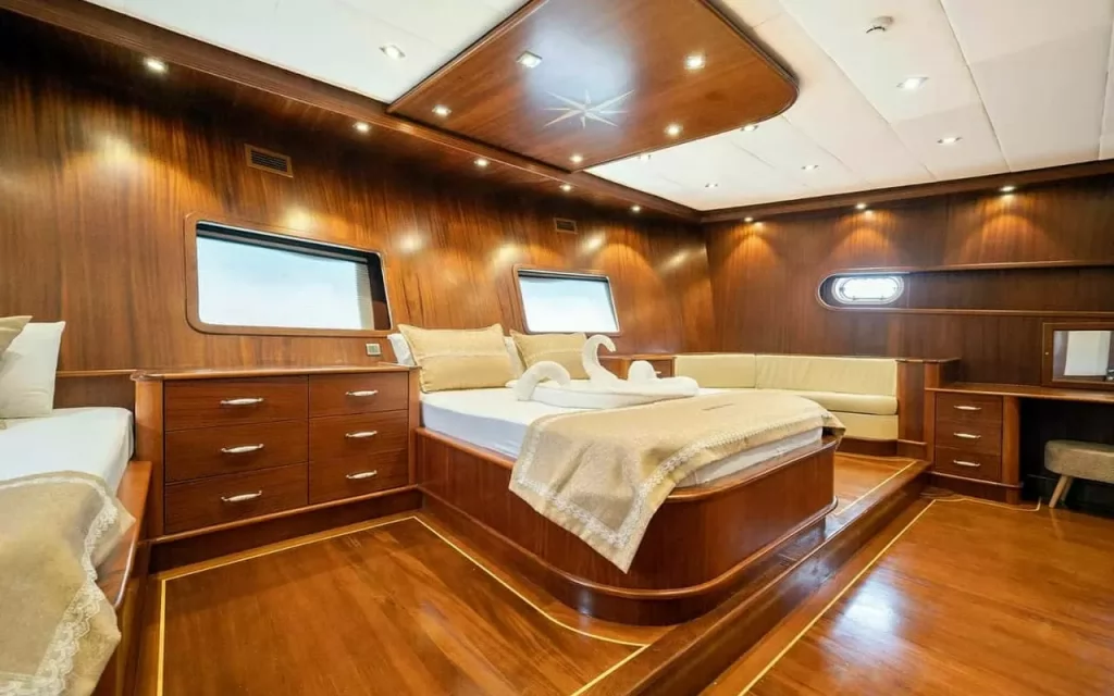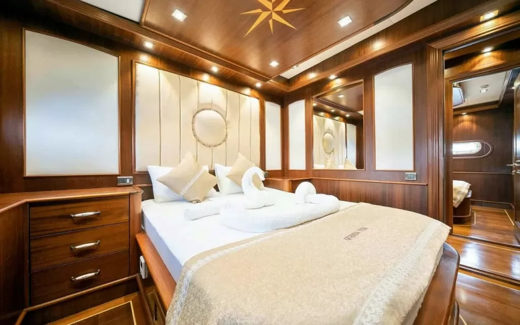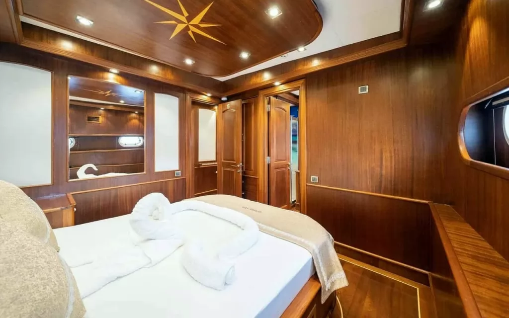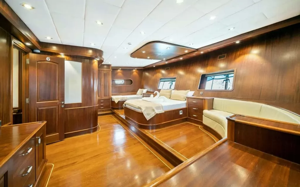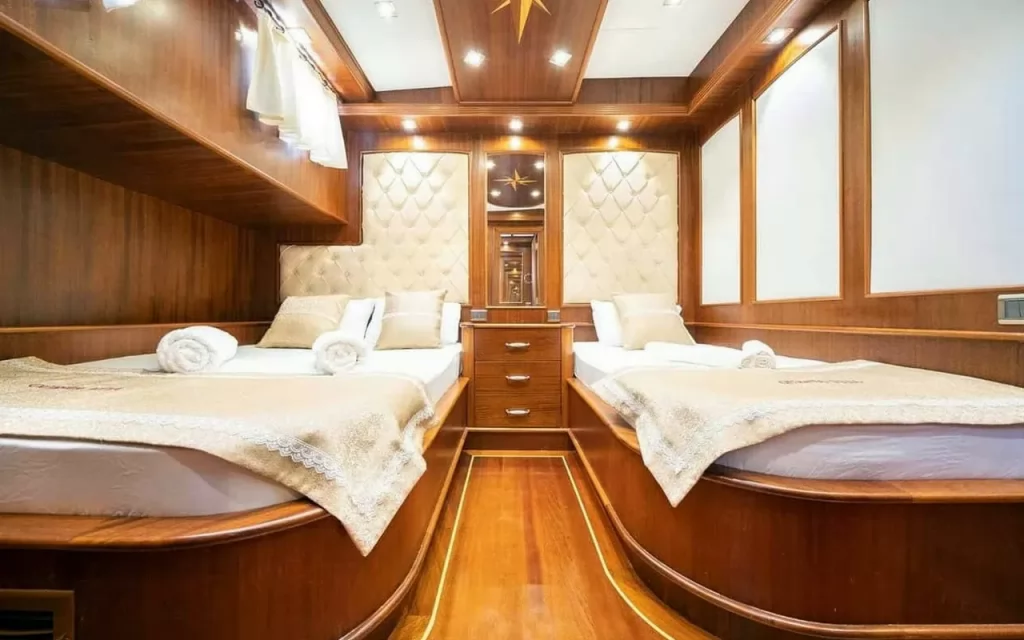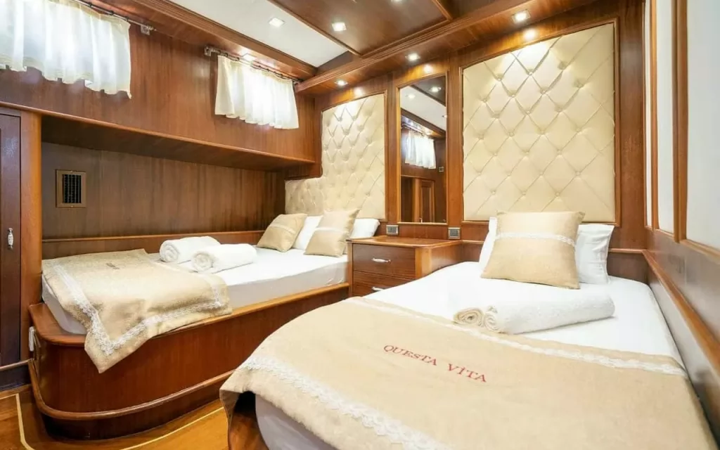 Con un total de 6 cabinas exquisitamente diseñadas, que incluyen 2 cabinas principales, 2 cabinas dobles y 2 cabinas triples, Questa Vita puede albergar cómodamente hasta 12 invitados. Cada cabina está equipada con control climático para garantizar una estancia confortable, independientemente de las condiciones meteorológicas. Los interiores destacan por su ambiente sofisticado y acogedor, reflejando la perfecta fusión de lujo y funcionalidad.