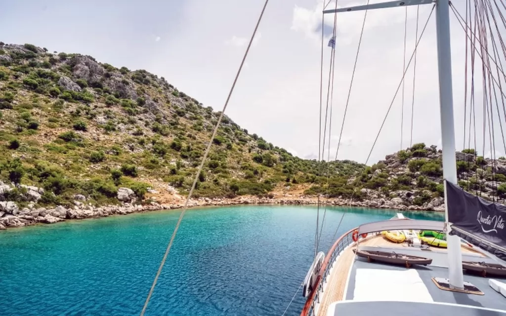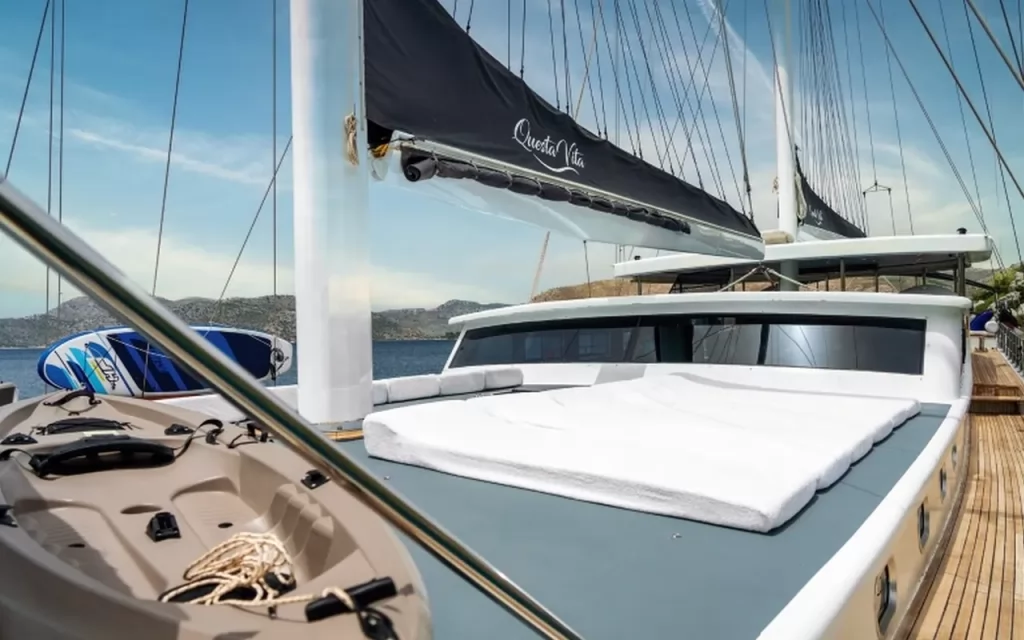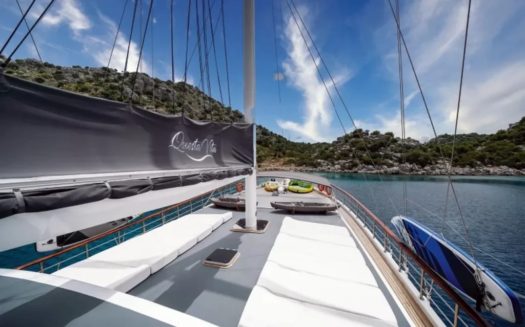 La lujosa goleta Questa Vita, un yate recién construido de 33 metros de largo, ha sido diseñada meticulosamente para ofrecer a sus huéspedes una experiencia incomparable en el mar. Su diseño elegante y contemporáneo, combinado con comodidades de primer nivel, la convierte en una elección excepcional para quienes buscan un equilibrio perfecto entre lujo y aventura.